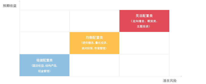 東海基金專戶理財全面考察客戶的預期收益及風險偏好,提供各種類型的產品。并可根據客戶的個性化需求提供定制產品。